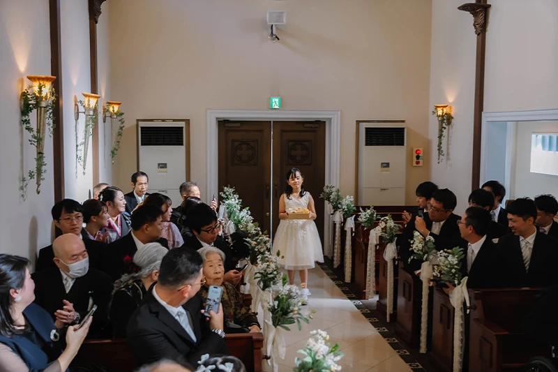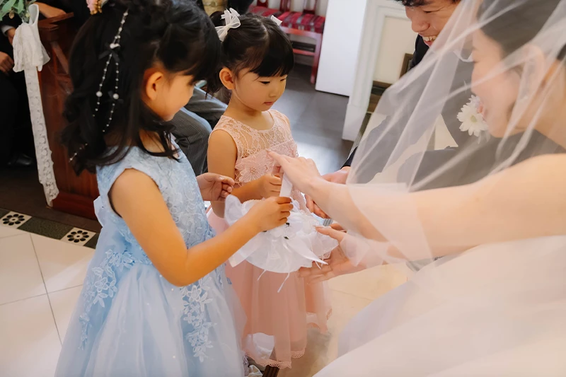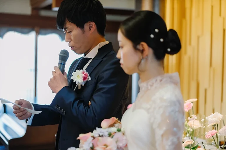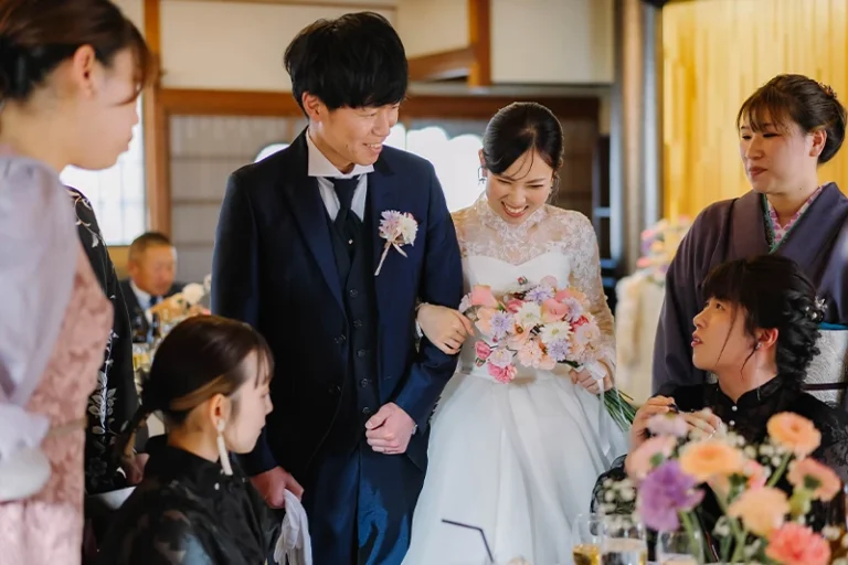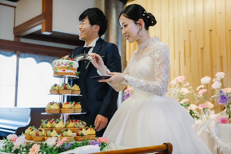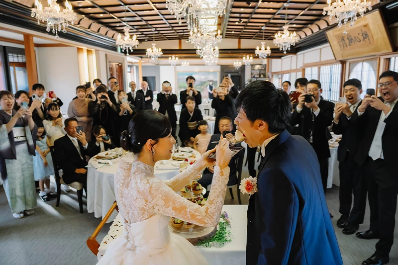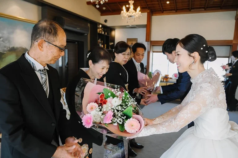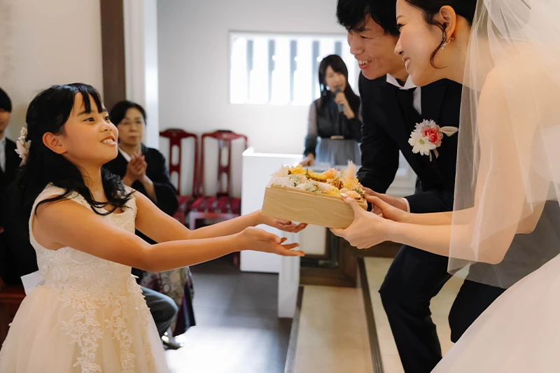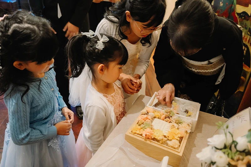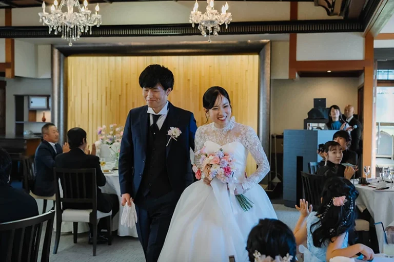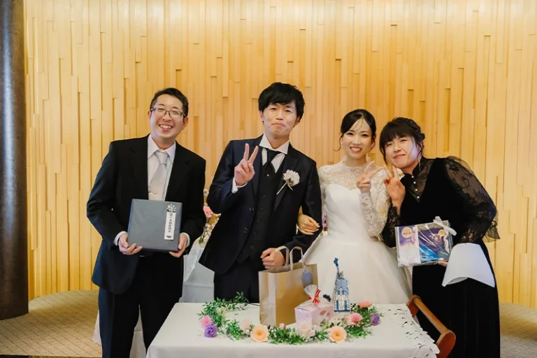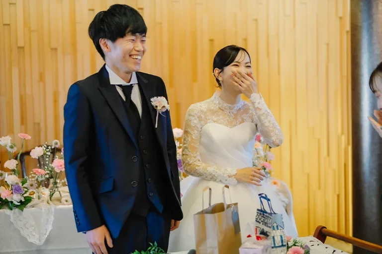 プロフィールムービーやお色直し等をなしにしたので少し内容が寂しいかなと思いましたが、みんなで参加できるゲームを提案していただき、参列者の方と話す時間も沢山取ることができました。
