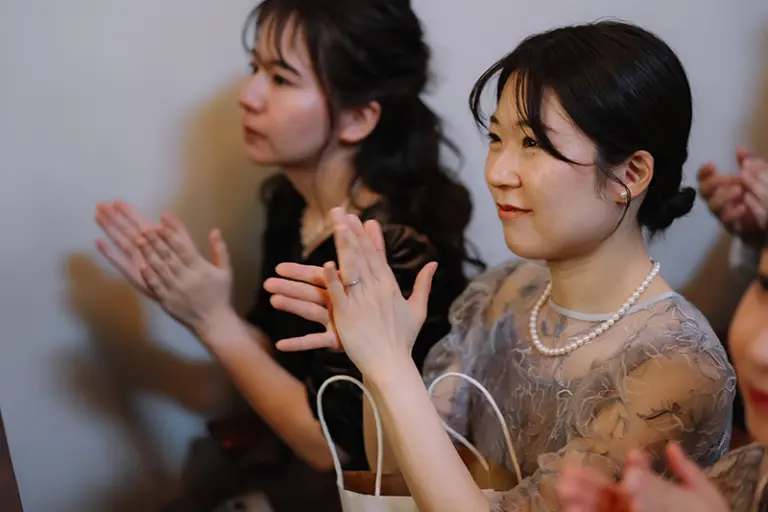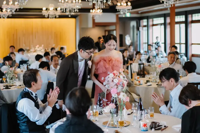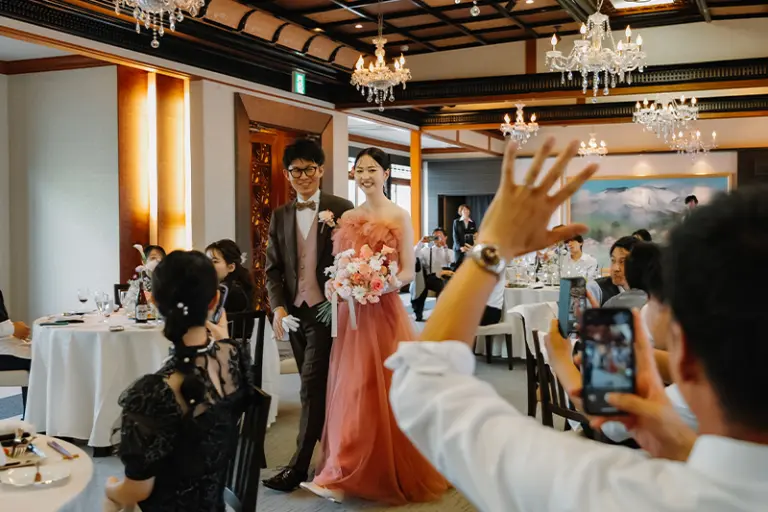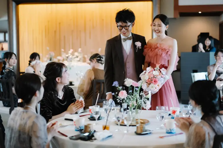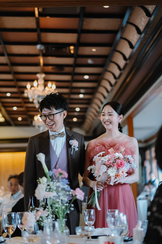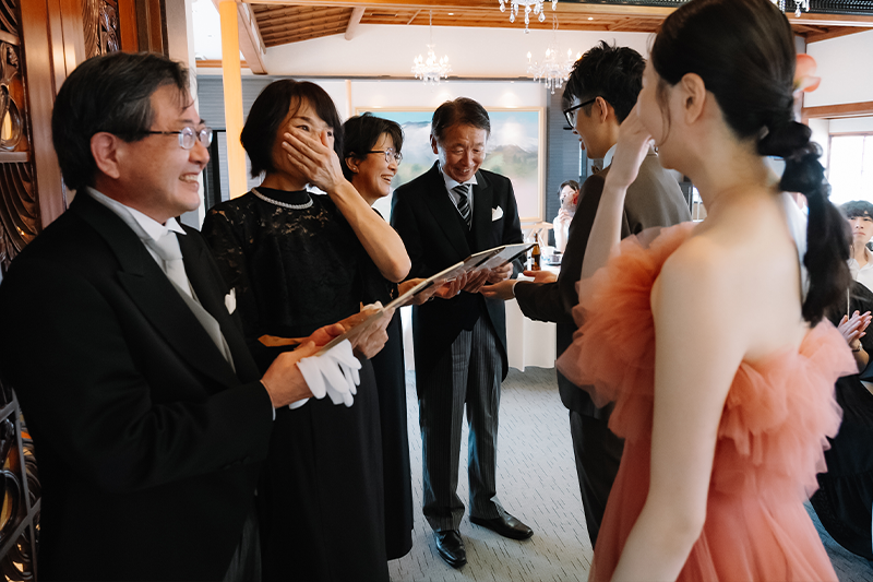 新郎には当日までカラードレスの色をサプライズにしていたため、とても良い反応が見られて楽しい時間になりました。