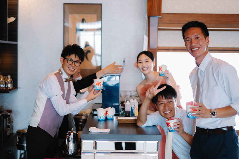 暑い日でしたが、体調の悪い方がいないか常に気にしてくださったり、ヘアメイクさんもすぐに前髪を直してくださったりしたので安心して過ごすことができました。今まで関わってくださった全ての方に本当に良くしていただき、結婚式当日とても楽しく幸せな時間を過ごすことができました。改めて本当にありがとうございました。