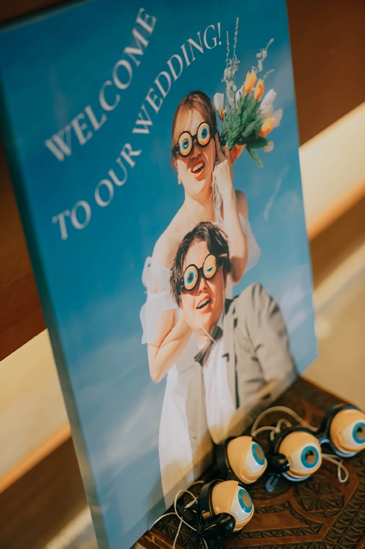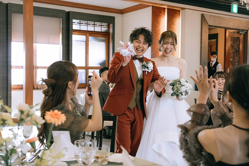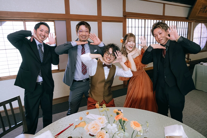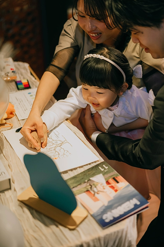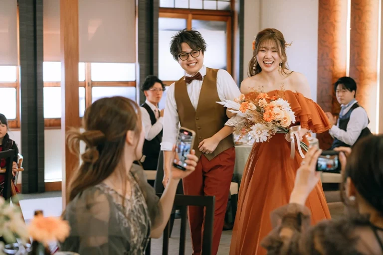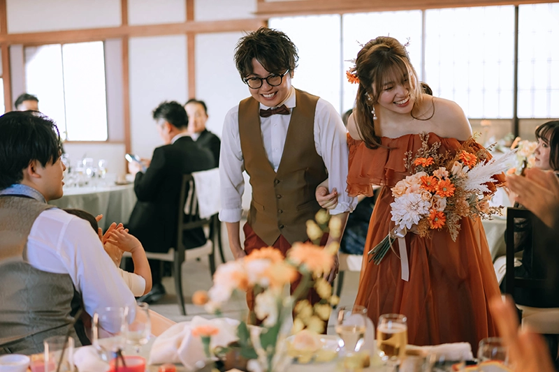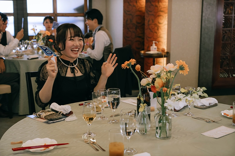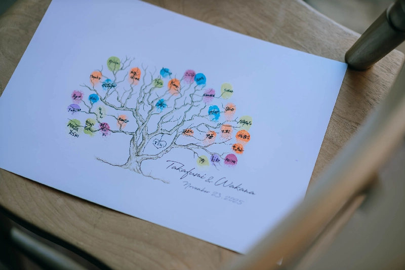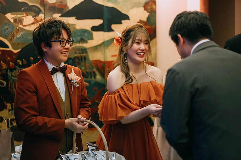 「かしこまらず、柔らかく、遊び心のある式」をコンセプトに当日の飾り付けも演出も、堅苦しくなく、来て下さるゲストの皆さんが自然と笑顔になれるような、リラックス感と親しみやすさを大切にしました。