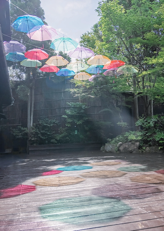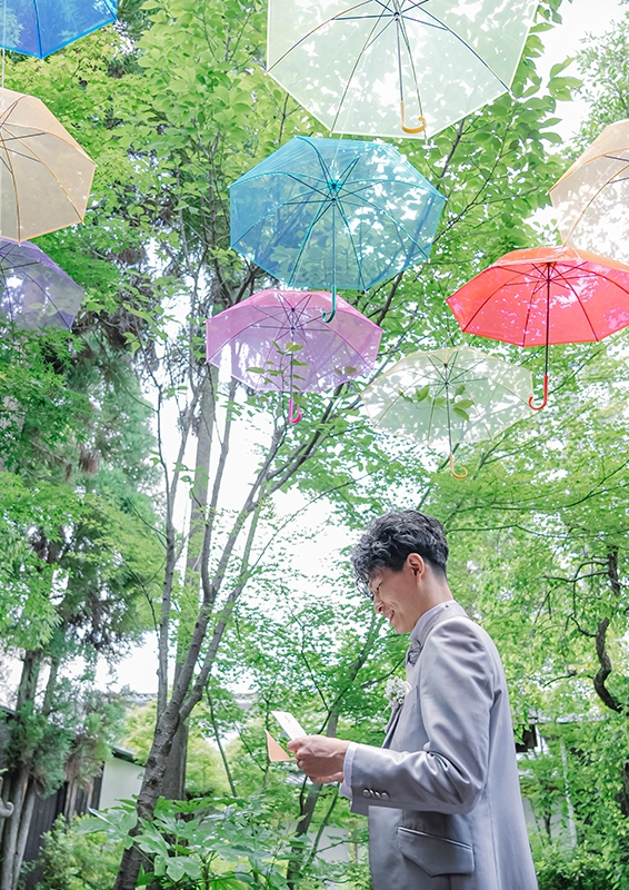プランナーさんと一緒に、2階と1階を行ったり来たりしながら傘を吊ったのはとても良い思い出です(笑)