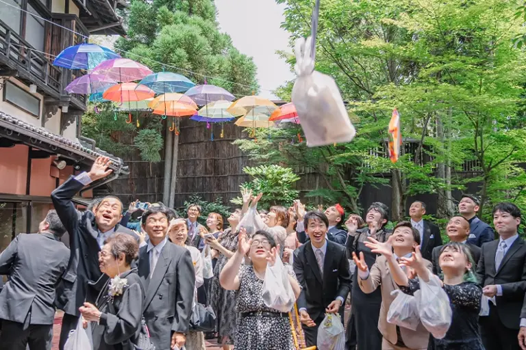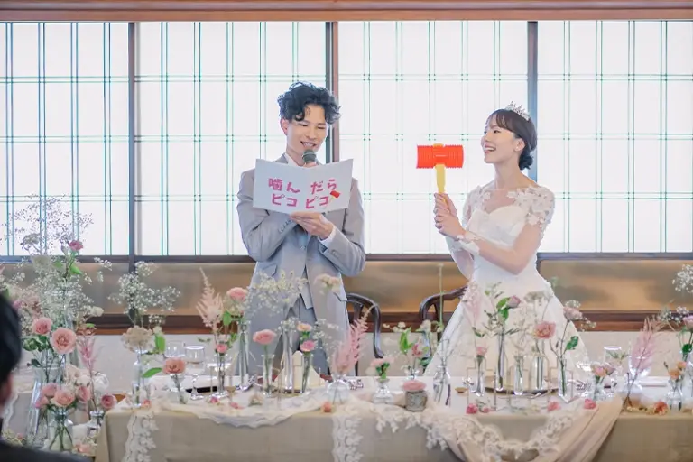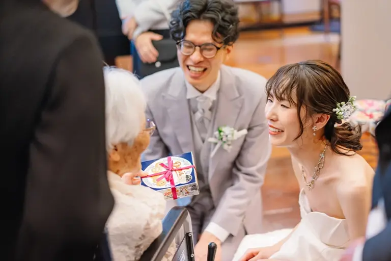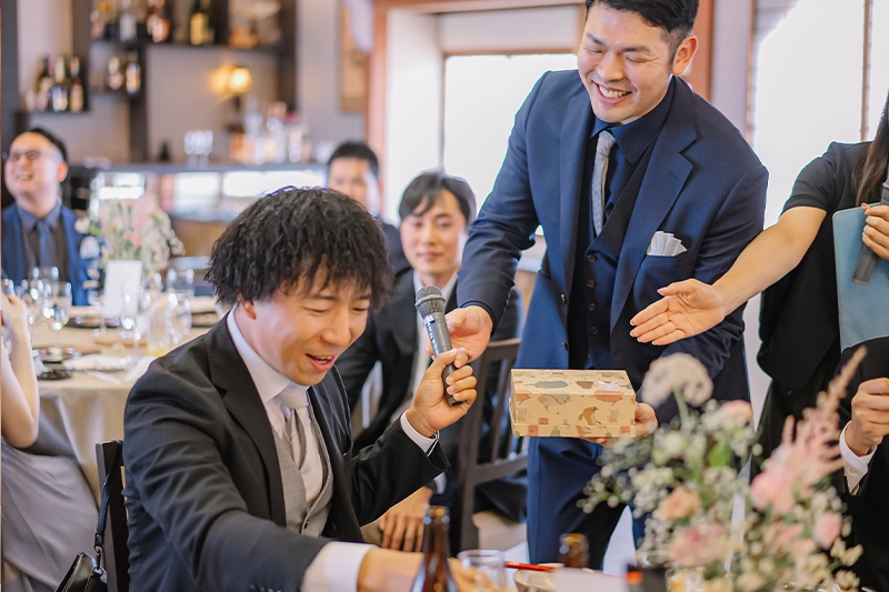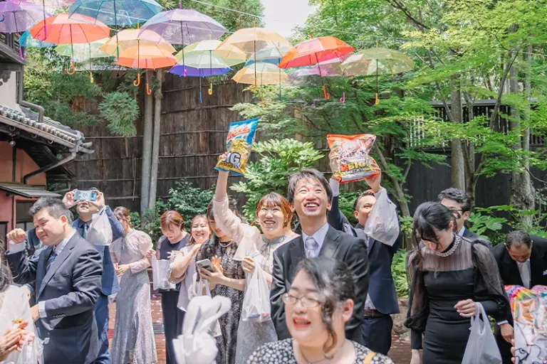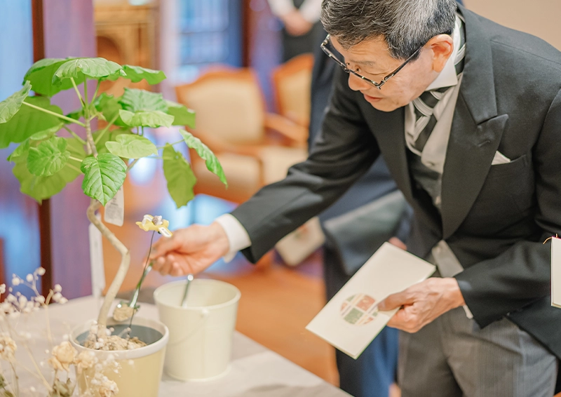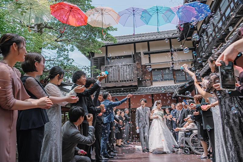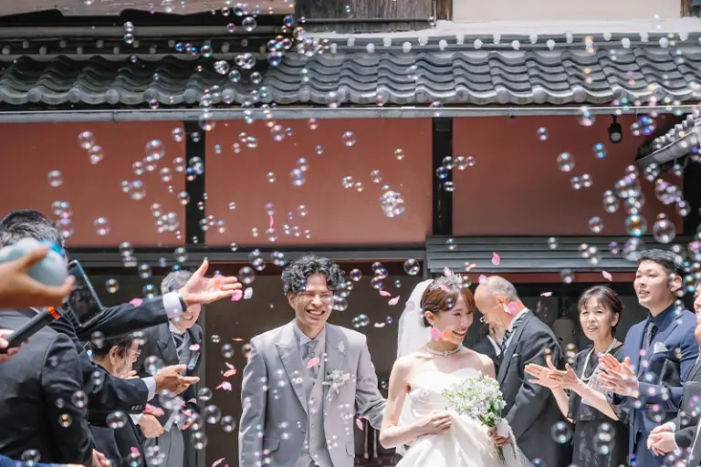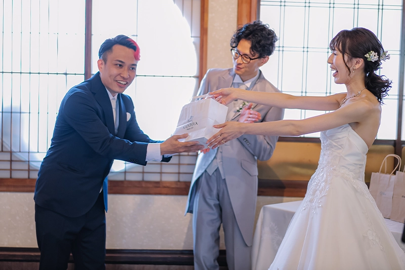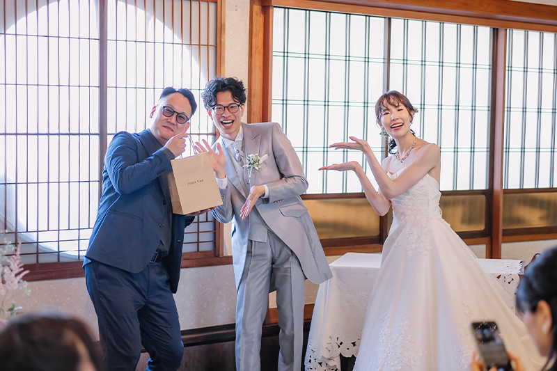 植樹セレモニー、BGMに合わせたドアの開閉、バブルシャワー、ピコピコハンマー付きのウェルカムスピーチ、プレゼントリレー、二次会……たくさん要望を詰め込んでしまいましたが、プランナーさんはじめ川地家スタッフの皆さまのおかげで、やりたいことを全て叶えることができました。
